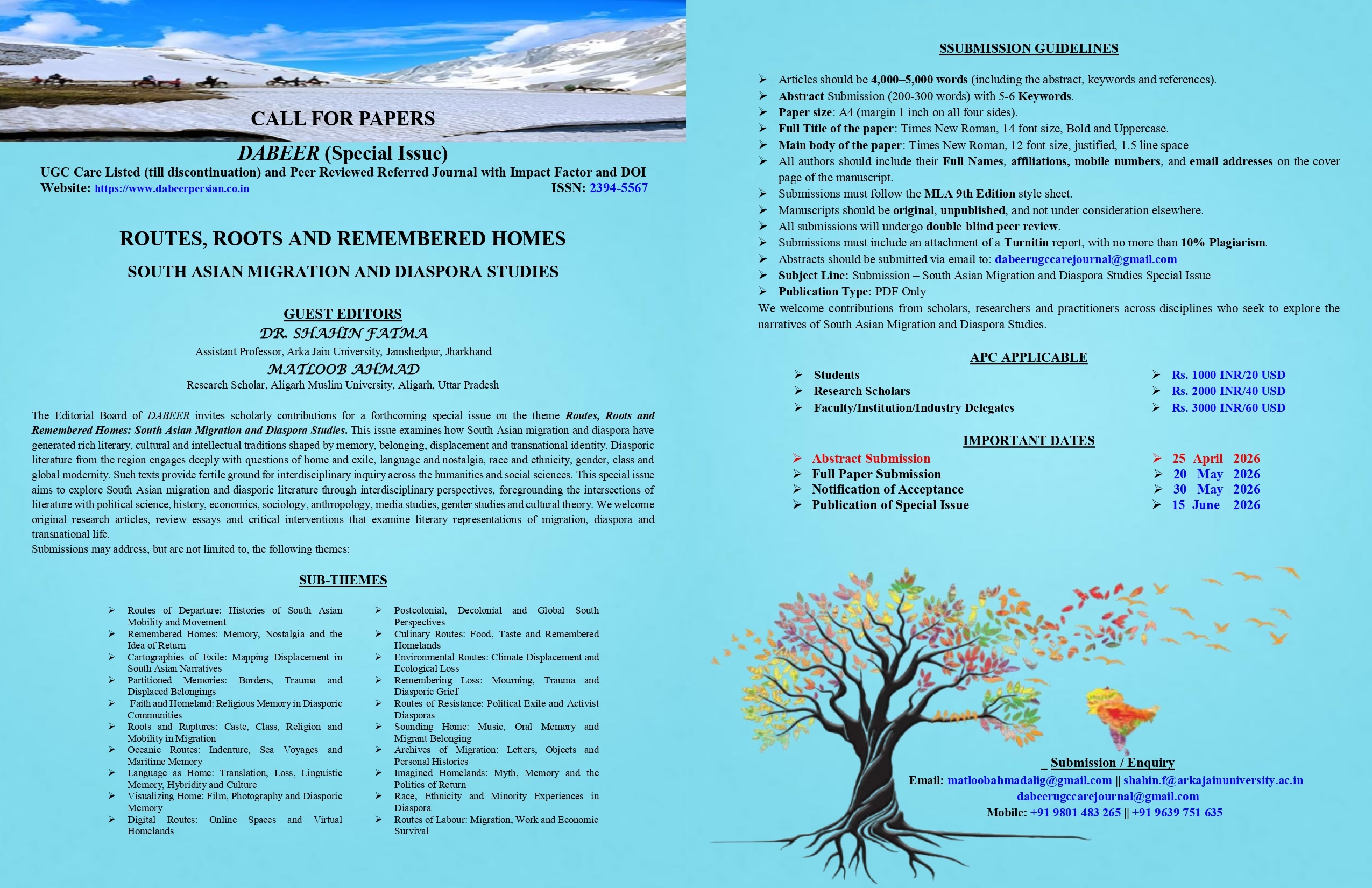Dabeer aspires to be one of the worlds leading journal publishing innovative, responsive and high quality Research Papers of Persian Literature for promotion of Very Rich Persian Literature Mainly Produced in Indian Sub-continent.